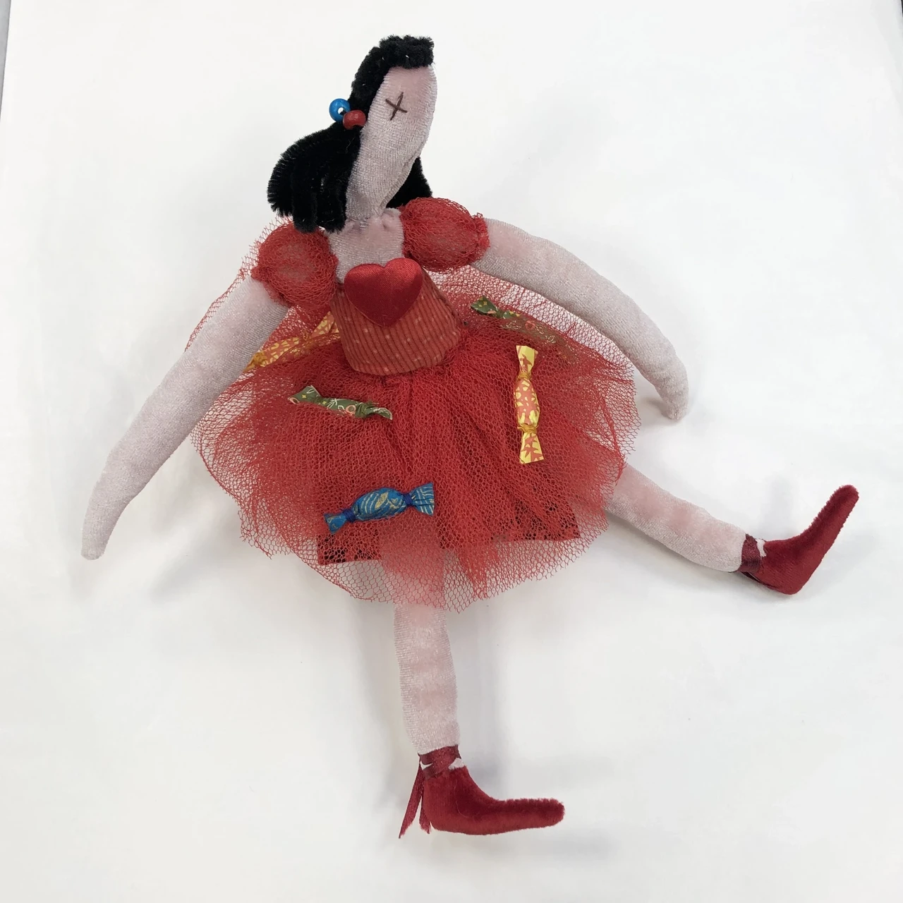 Padjal istuv tekstiilist nukktegelane sarjast “Pidu 1978”