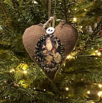 Käsitööna valminud puuvillasest kangast kuuseehe. Kaunistatud fototrükis vintage pildi, pesunööbi ja pärlipuruga.