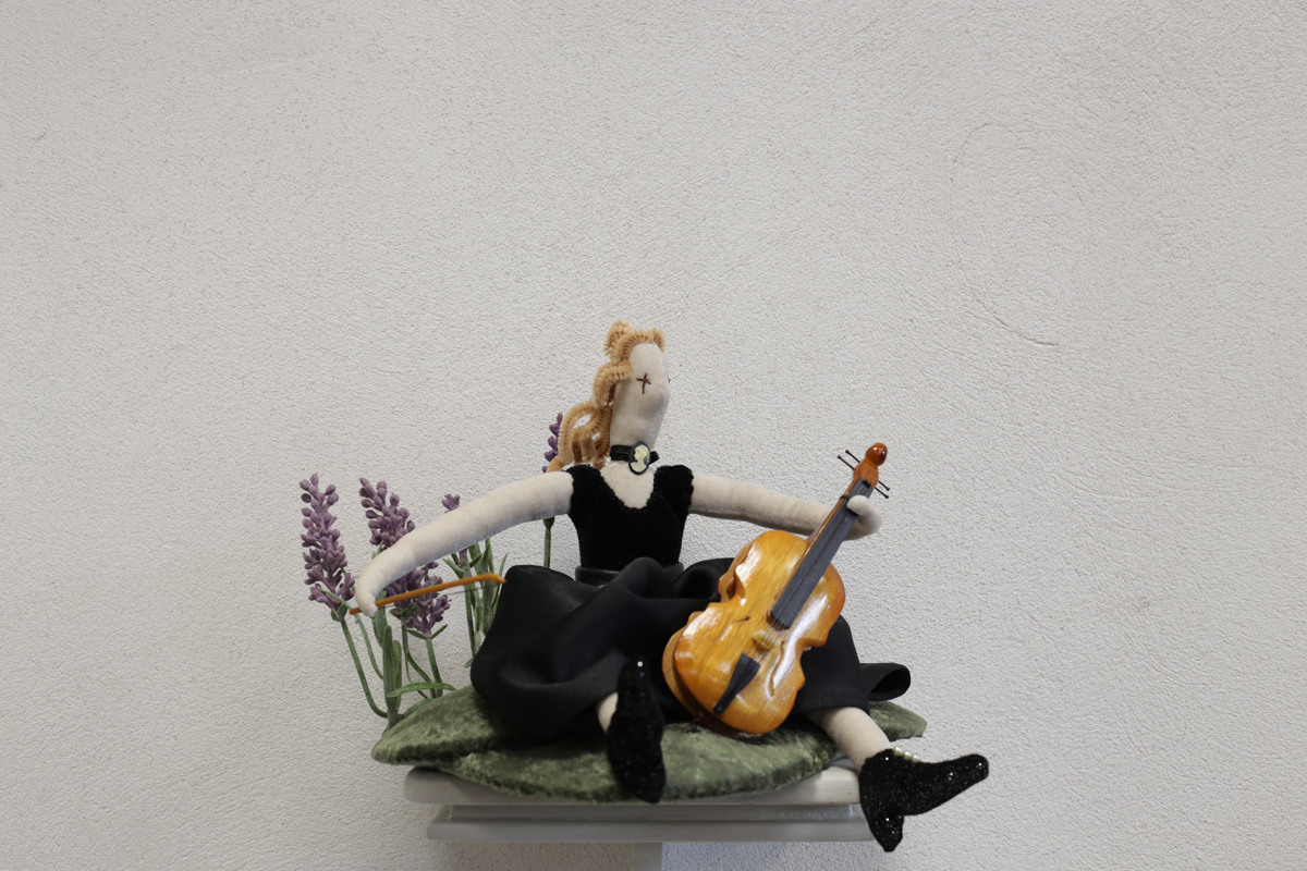 Pidulikus kleidis tšellomängija on dekoratiivne ja lõhnav ruumiaksessuaar. Sametine lavendlipõld sisaldab naturaalseid kuivatatud lavendliõisi.