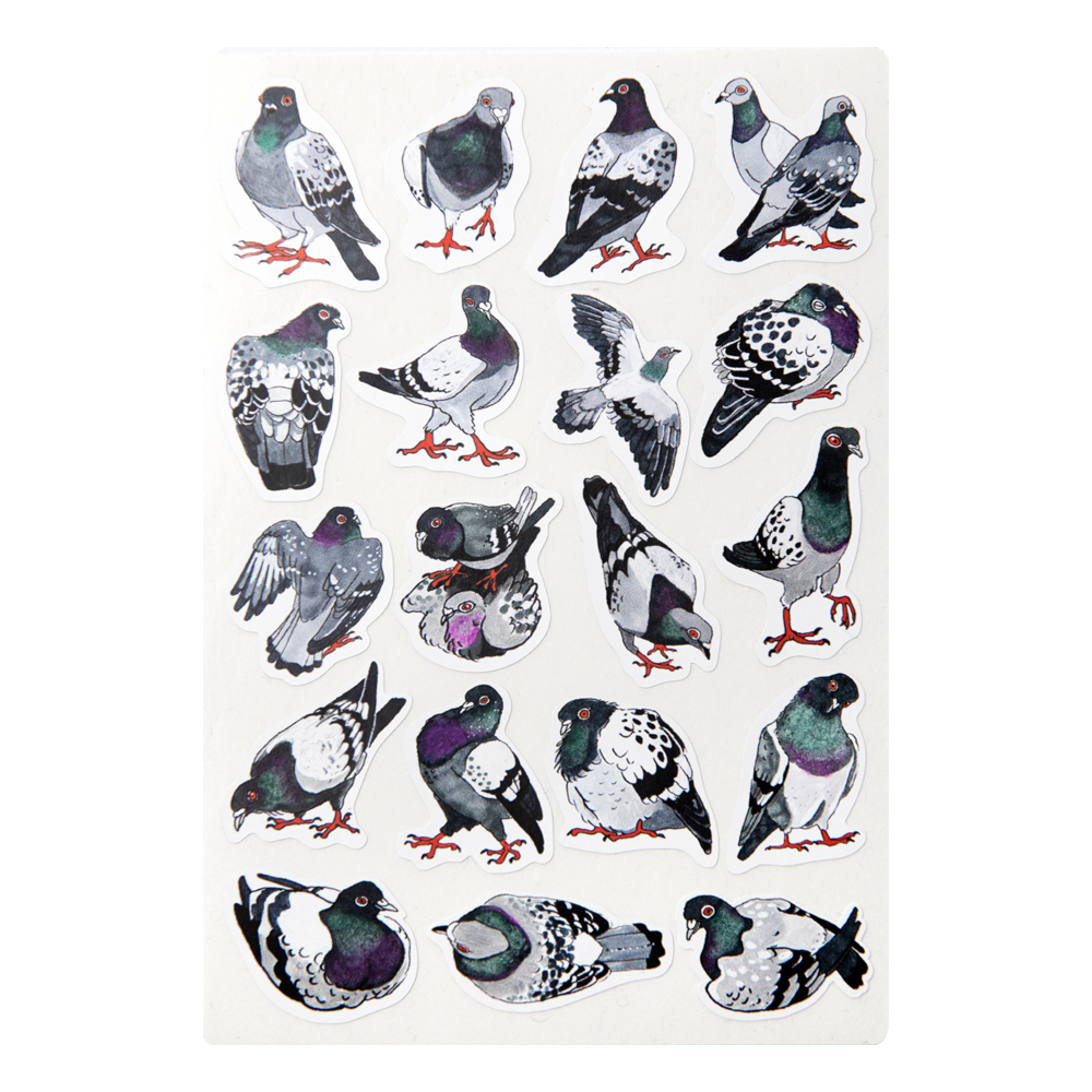 KRISTEL SERGO joonistatud tuvidega kleebiseleht.