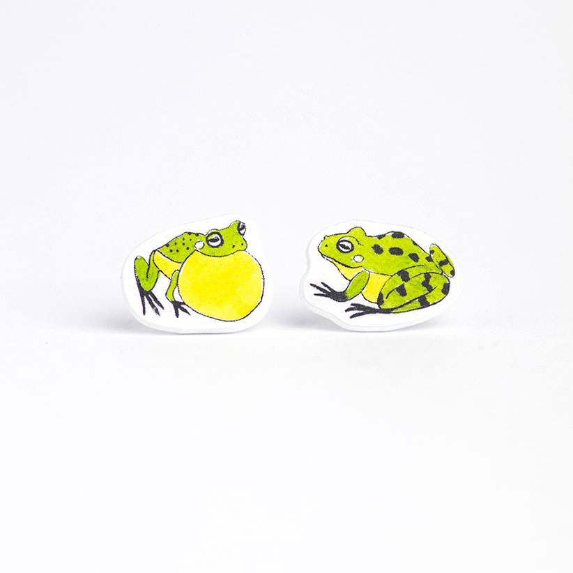 joonistusest käsitööna valminud postkinnitusega pisikesed kõrvarõngad.