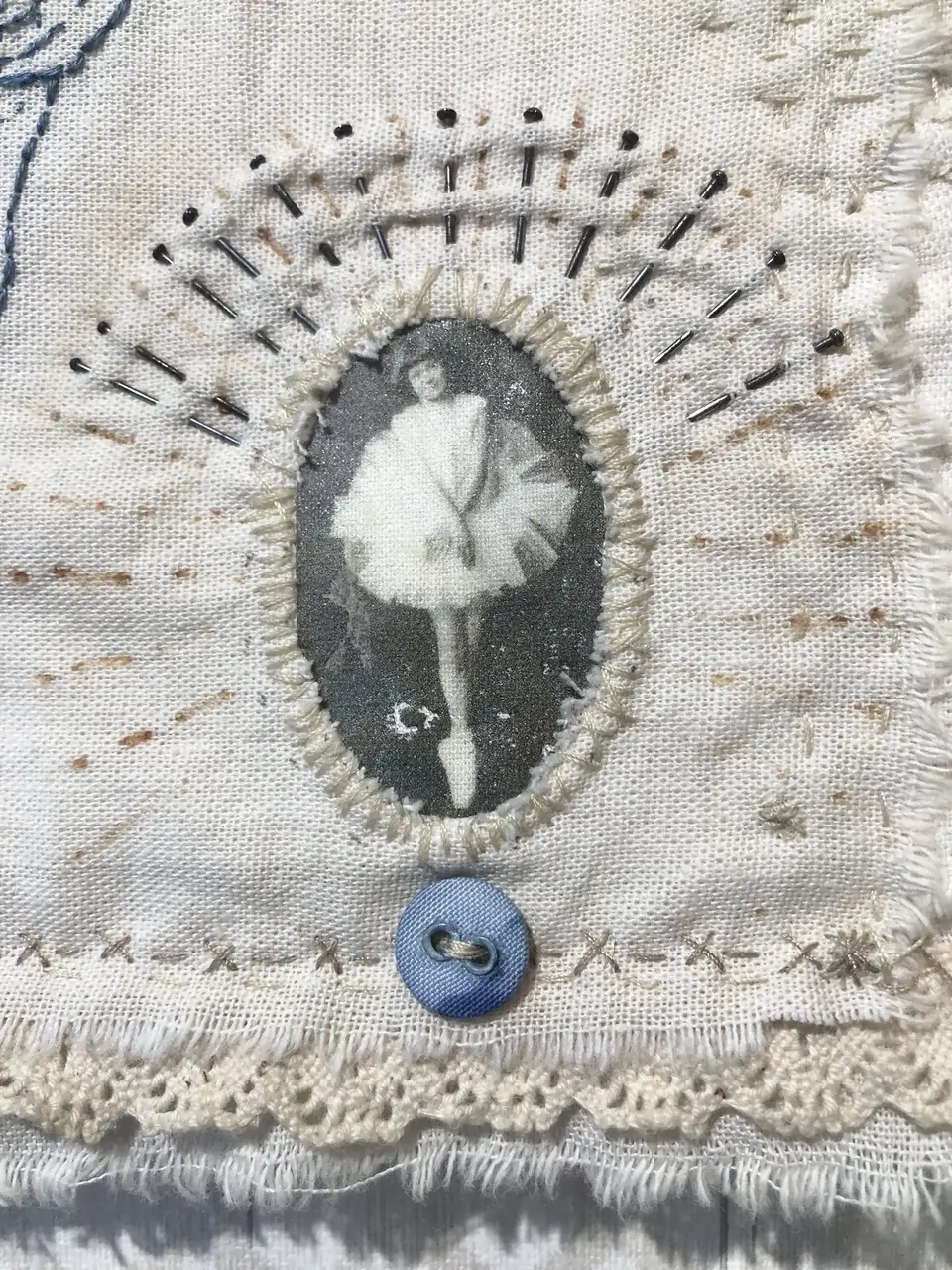 (tikand, fototrükk, taimedega värvitud puuvillane vintage kangas ja detailid)