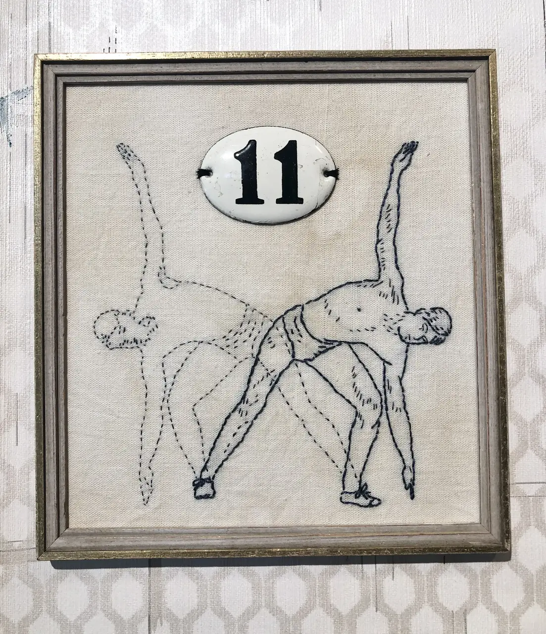 Tikand, taimedega värvitud puuvillane vintage kangas, emaileeritud metallist leidobjekt nr 11, vintage pildiraam