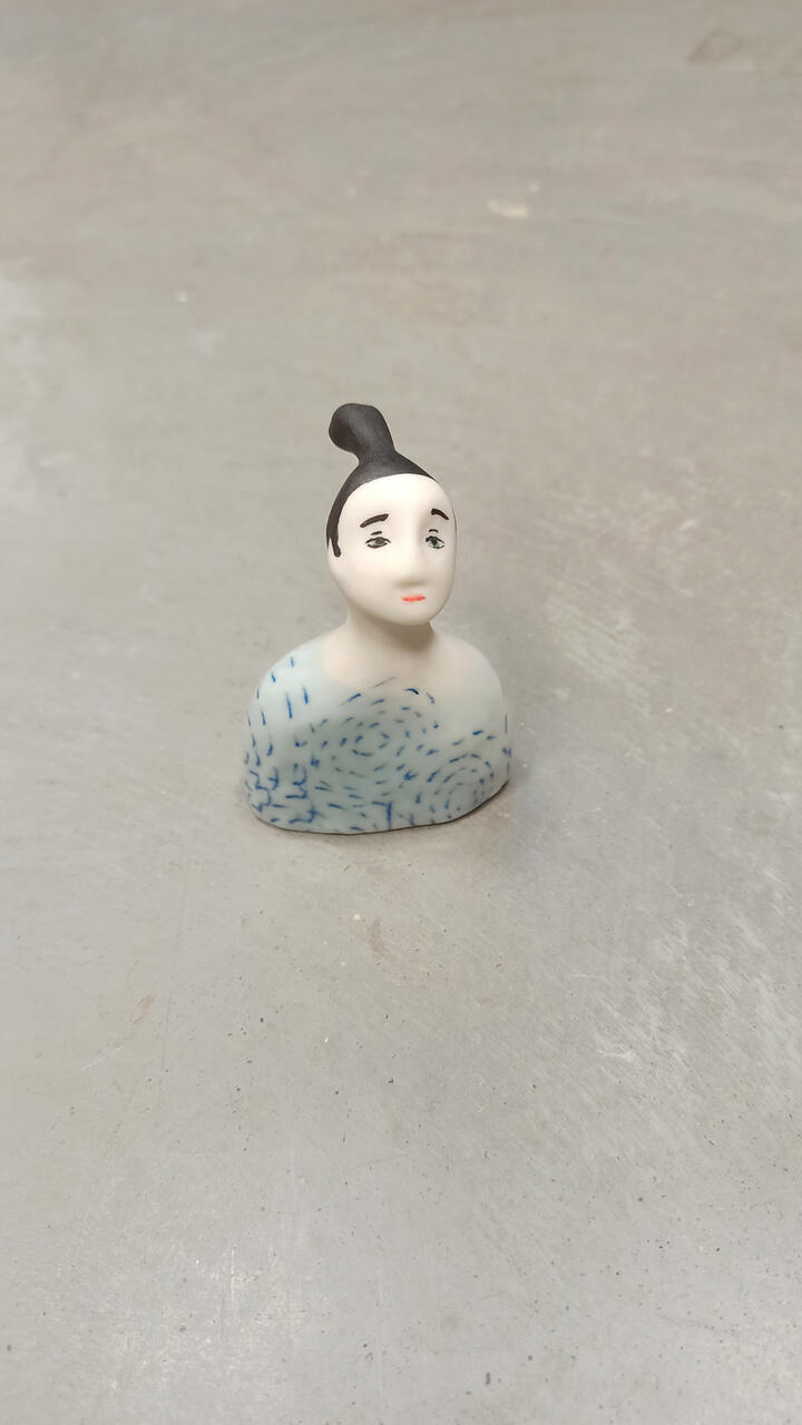 TIINA KALJUSTE käsitsi modelleeritud ja maalitud ning helesinise glasuuriga kostüümis tegelane portselanfiguuride sarjast "Inimesed, keda sa võid teada"