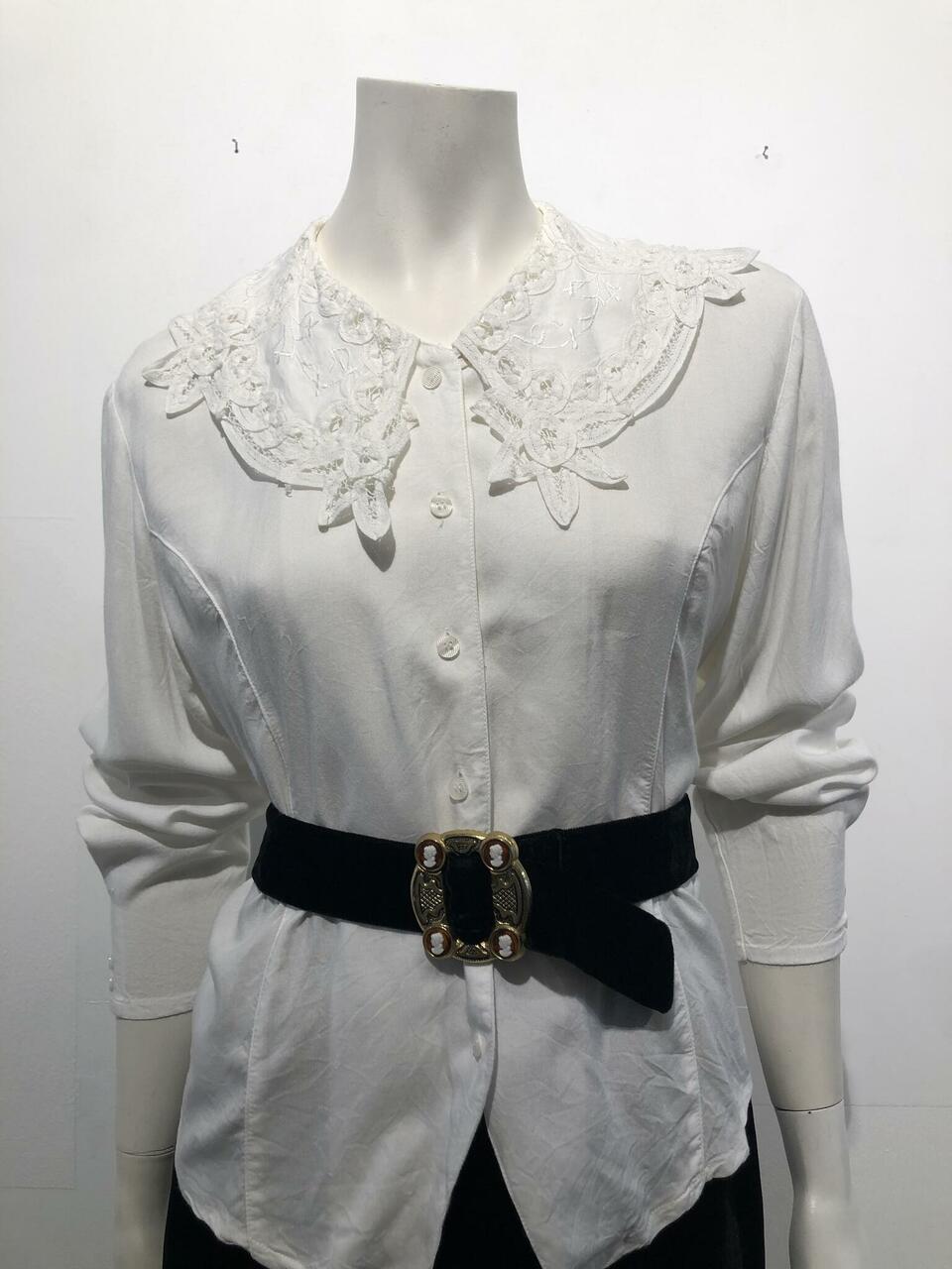 Ilus ajastuhõnguga puuvillane vintagepluus. Suur tikanditega krae.
