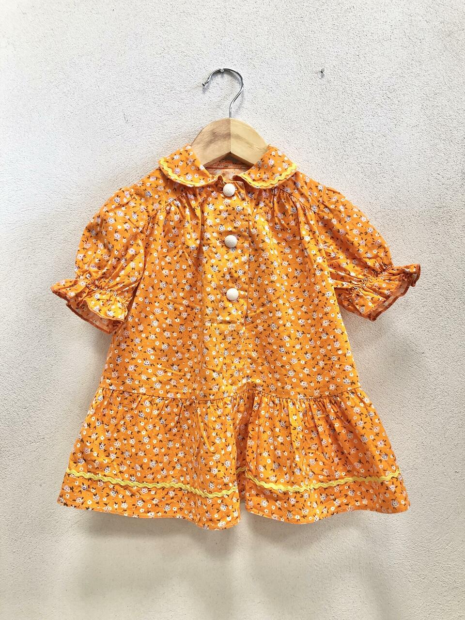 Armas väikese lillemustriga puuvillane apelsinikarva sitsikleit 1970datest