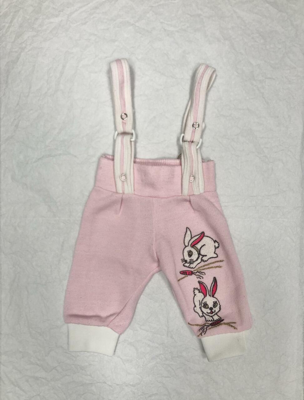Seest pehmed uhutud roosad jänkudega vintage beebipüksid.