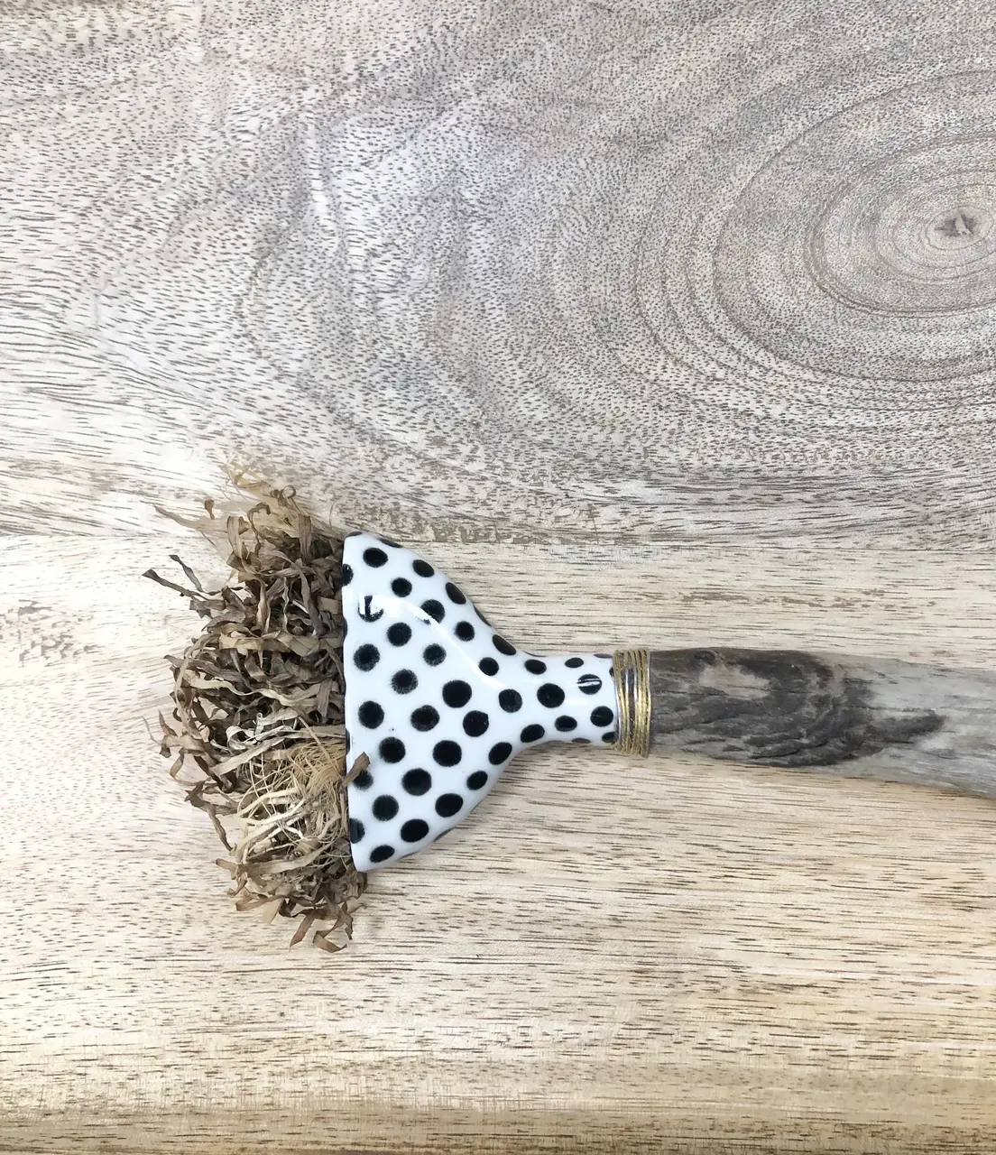 SPOTTED PORCELAIN BRUSH WITH SEA GRASS
