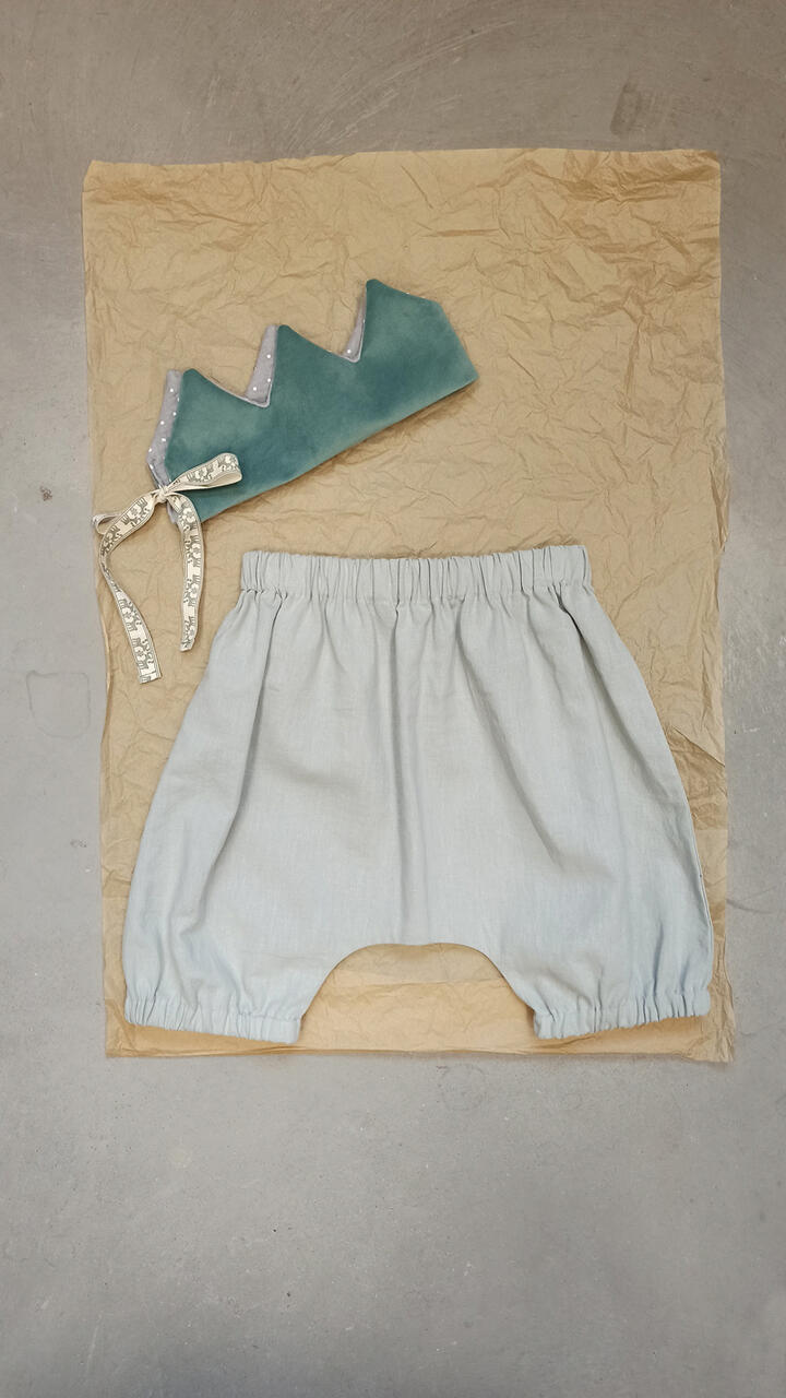 Soft linen bloomers and a velvety crown for the Prince of the Backyard.